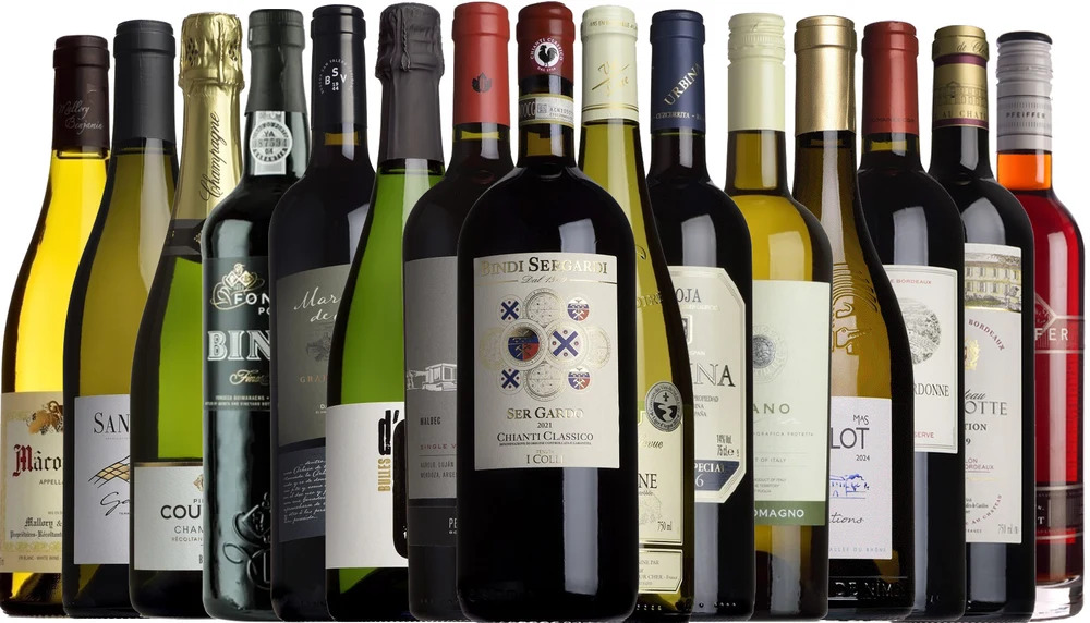 A cracking collection of premium and mid-range reds and whites, fizz, a magnum, vintage Port, and sweet dessert wine, all wrapped up with a complimentary glass wine-decanter and branded corkscrew (together worth almost £50). Your wine experience is covered - 14 bottles, a magnum and free accessories.