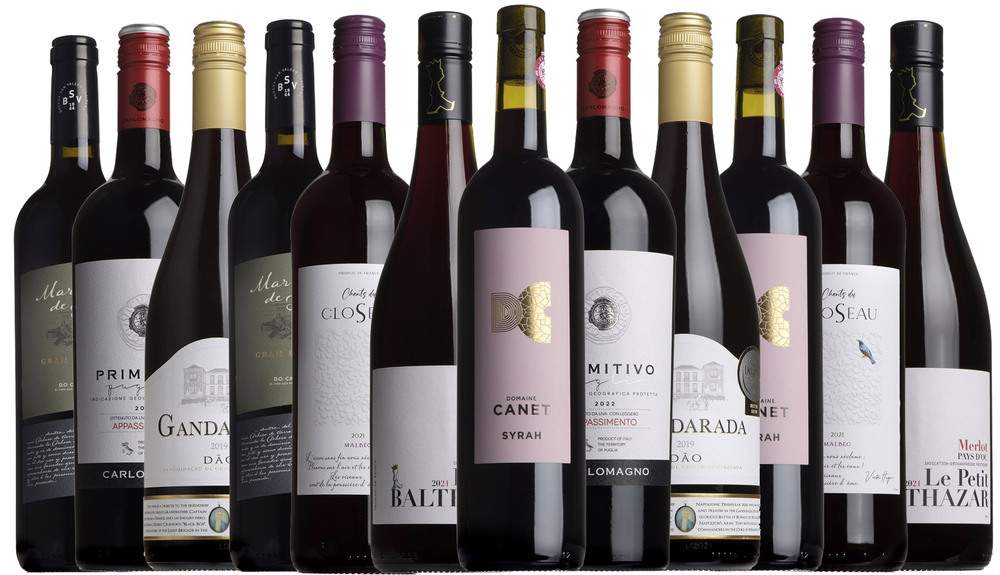 Treat yourself to this delicious dozen of succulent reds and save £12.40 off the normal case price. Then save another £10 via free delivery. An eclectic selection (6 x 2 of each) perfect for authentic, everyday drinking pleasure, with each at an average bottle price of just £11.25 offering outstanding value for money. This means sumptuous tempranillo from Spain; robust syrah from Southern France; gandarada tinto from Portugal; gorgeous shiraz/grenache blend from Costières de Nîmes; fruity, full-bodied merlot from Languedoc; and opulent primitivo appassimento from Puglia. Fabulous variety, irresistible price.
